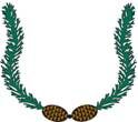 Le blason est soutenu par deux cônes et jeunes plants de conifères symbolisant la vivacité et le reboisement forestier. | ||
