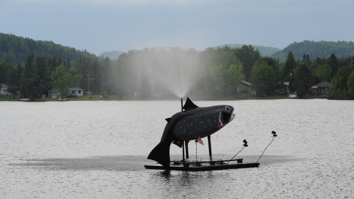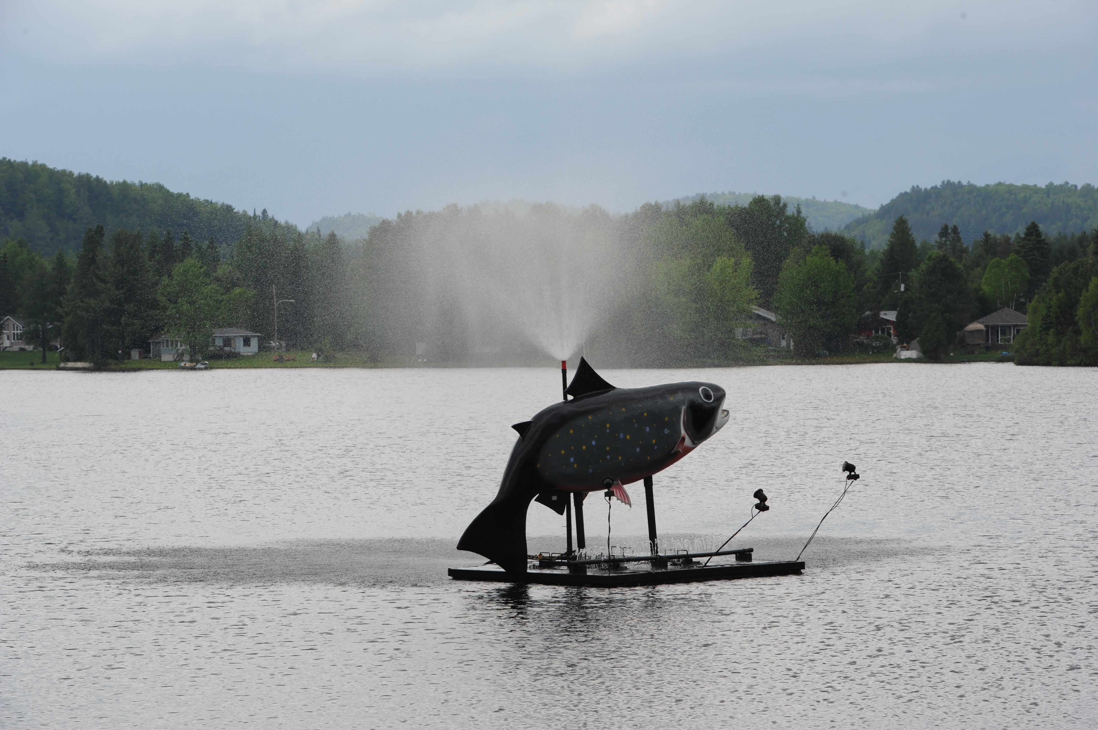Elle trône chaque été sur le lac Saint-Alexis et devient un attrait touristique et symbolise très bien l'appellation "Saint-Alexis-des-Monts, capitale de la truite mouchetée".